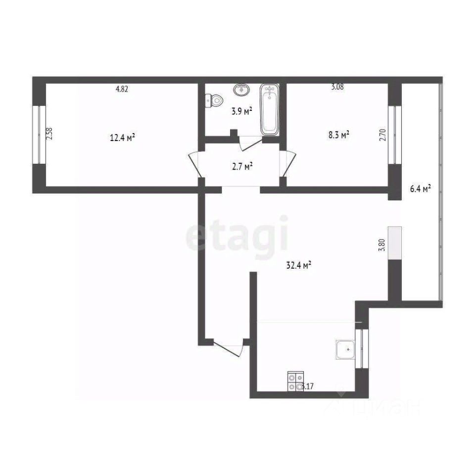 * Хранение: остаются встроенные шкафы в ванной и на балконе