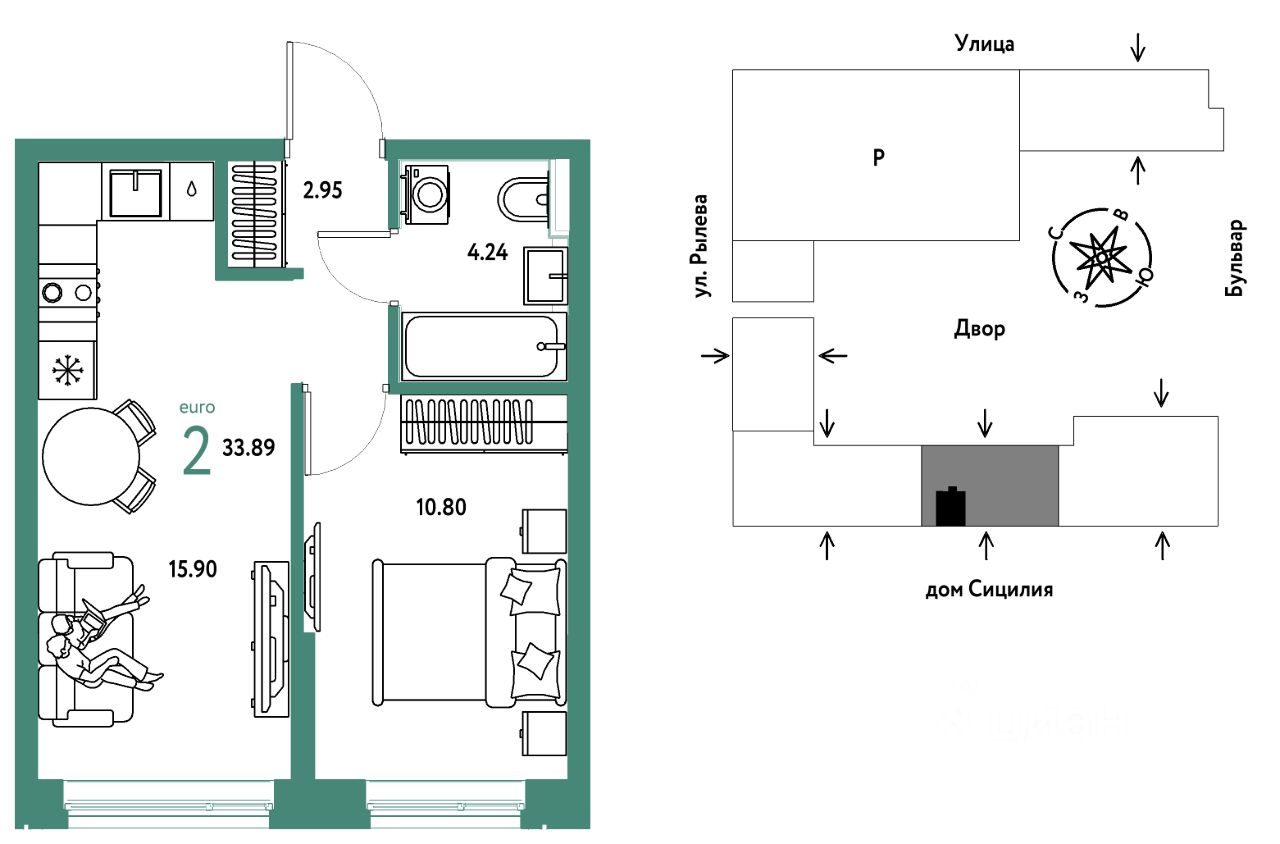 Продается 2комнатная квартира на 7 этаже от застройщика Страна Девелопмент. Площадь квартиры 33,89 кв. м.