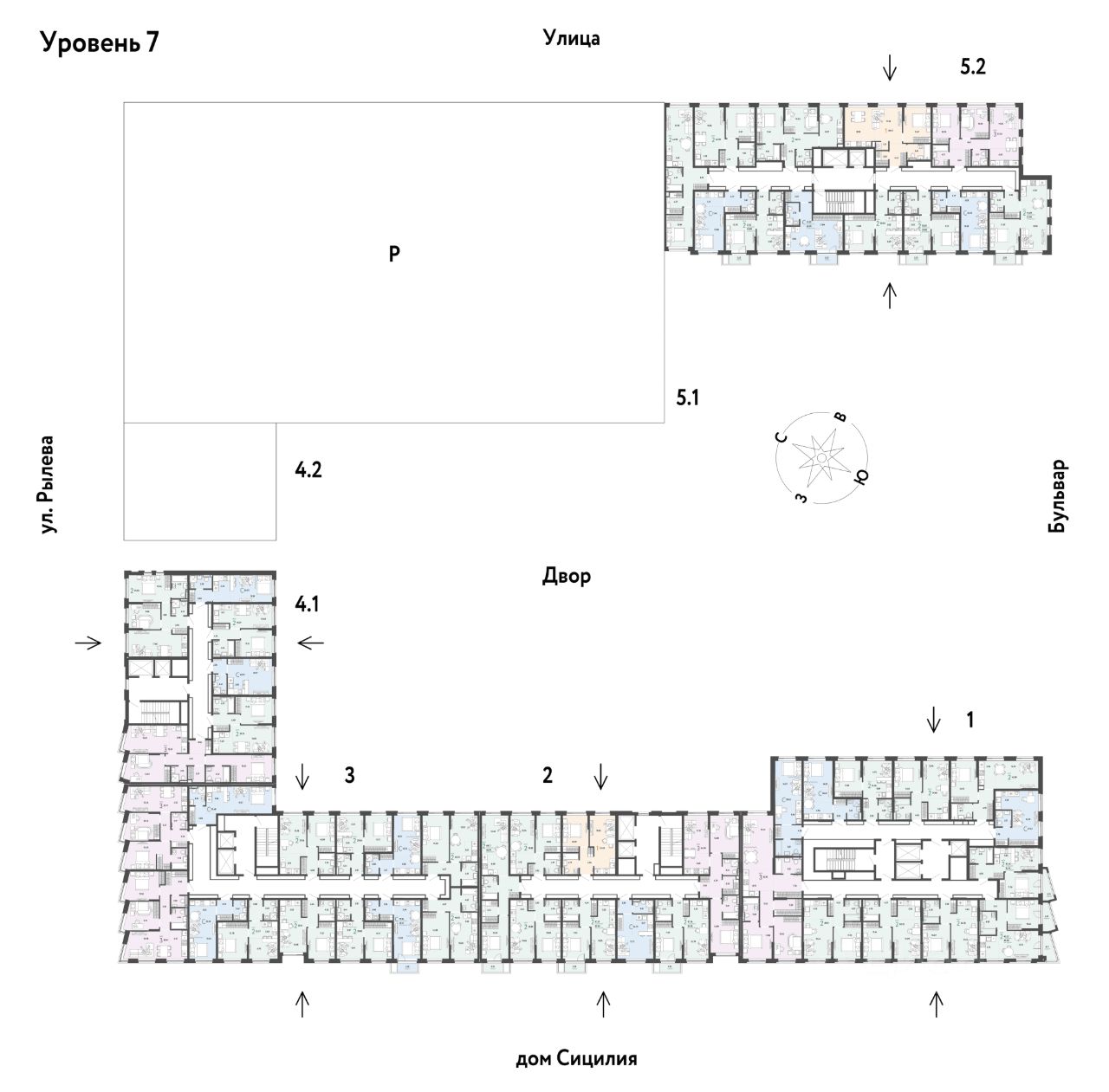 Развитое жилое пространство — закрытые дворы-сады, свои набережная и бульвар, торговая галерея на 1-м этаже, рядом детсады, школы и поликлиника.