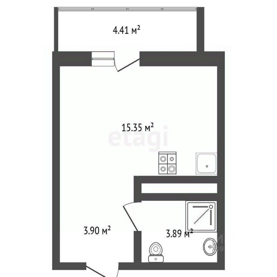 Просторная студия 23м2 с открытым балконом, 4,41 м2 с видом на центральную часть района ДОК, в будущем будет красивый вид на новостройки застройщика Страна.