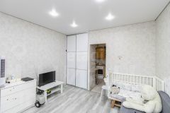 Студия площадью 29,8 кв.м. с умело зонированной кухней и спальней, которые разделены стильной гипсокартонной перегородкой, превращает пространство в полноценную 1-комнатную квартиру. Внутри выполнен качественный ремонт, установлены натяжные потолки и уютная гардеробная, что добавляет функциональности и стиля вашему новому дому.