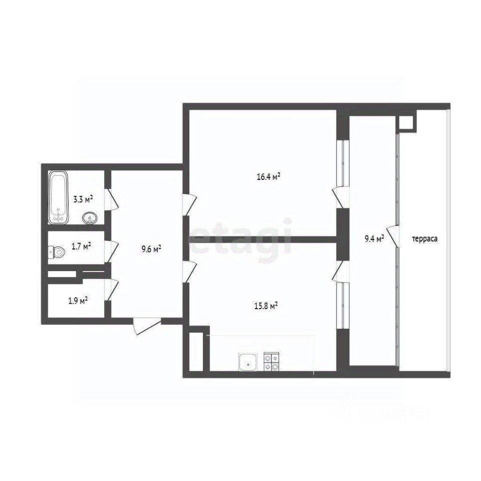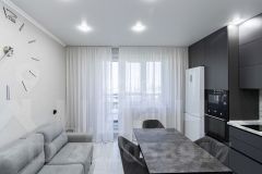 Квартира с качественным ремонтом в нейтральных тонах отличается продуманной планировкой: изолированная кухня-гостиная 15,8 м² с современной техникой, уютная спальня 16,4 м², большая лоджия на всю ширину квартиру с витражным остеклением и с выходом на террасу. Санузел раздельный в кафеле, с сантехникой премиум-сегмента, вместительная гардеробная.
