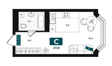 Продаётся студия в строящемся доме (ГП-1 (Тимофея Кармацкого, 18)), срок сдачи: III-кв. 2028, общей площадью 27.8 кв.м., на 10 этаже. Новый жилой комплекс от Специализированного застройщика "ИНКО" расположен по адресу: г. Тюмень по ул. Евгения Войнова.
