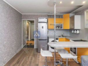 В квартире сделан хороший ремонт. Пол: плитка/ламинат, санузел: кафель. На стенах обои. Качественные межкомнатные двери. В квартире остается вся мебель, кроме техники!