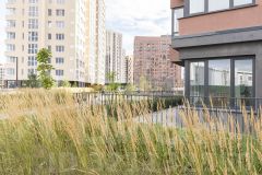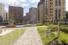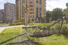 Внутри комплекса создана комфортная среда: просторные пешеходные дворы, свободные от автомобилей, с зонами отдыха и современными детскими площадками, обеспечивающими безопасность и спокойствие для жителей.