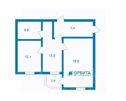 Современная планировка. Просторная кухня-гостиная на 2 окна. И спальная с выходом на застекленную лоджию.