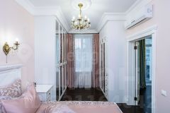 Все двери, шкафы, мебель в спальне, прихожая, зеркала выполнены по индивидуальному заказу из массива Березы, на все установлены Blum фурнитура. Полы массив сосны, плитка в квартире KERAMA MARAZZI, вся сантехника и фурнитура (петли, ручки дверей, ручки мебели, полотенцедержатели ) от фирмы Wasserkraft.