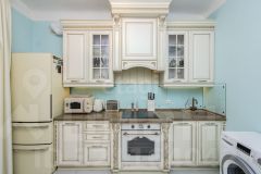 В квартире остаётся стильный кухонный гарнитур Итальянские фасады выполнены из массива Липы, доводчики Blum, со встроенной посудомоечной машиной Bosch, плита и духовой шкаф Electrolux, мебель, встроенные шкафы.