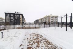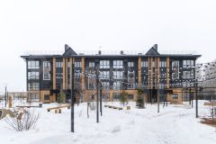 Дом монолитно-каркасный, на фасадах чередуются сдержанные оттенки и природные текстуры. Двери в парадные расположены на уровне тротуара, чтобы было легко заходить с коляской или велосипедом.В каждой парадной спроектированы колясочные. Для безопасности вещей установлены камеры в парадных, лифтах и по периметру домов. Двор без автомобилей, будет детская площадка и зона отдыха.