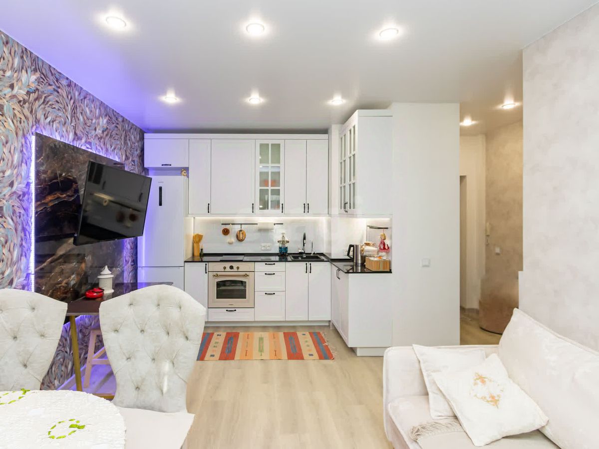 Просторная студия с современным ремонтом расположена в экологичном квартале комфорт-класса "Дом.Лес.Парк". Ключевой особенностью объекта является выход на собственную террасу с участком земли, что предоставляет уникальную возможность для городского жителя создать приватное зеленое пространство. Планировка отличается продуманностью: большие окна обеспечивают обилие естественного света и визуально расширяют пространство. В квартире выполнен качественный ремонт в нейтральной цветовой гамме, готовый для комфортного проживания. Жилой комплекс спроектирован по концепции "двор без машин", предлагая развитую инфраструктуру для отдыха: детские игровые и спортивные площадки, велосипедные дорожки и зоны для спокойного времяпрепровождения среди обильного озеленения. Безопасность обеспечивается круглосуточным видеонаблюдением. В непосредственной близости от дома расположен оздоровительный центр "Биография" с всесезонными бассейнами, включая горячий в зимний период и открытый летний, а также баней. Рядом обустроен ландшафтный парк "Древо Жизни" для ежедневных прогулок. В шаговой доступности находятся детский сад 158 и школа 56, что формирует идеальные условия для семьи. Транспортная доступность развита, что позволяет быстро добраться до центра города. Объект представляет собой сбалансированное предложение для тех, кто ценит современный формат жилья, гармонично сочетающий преимущества загородной жизни с динамикой мегаполиса.