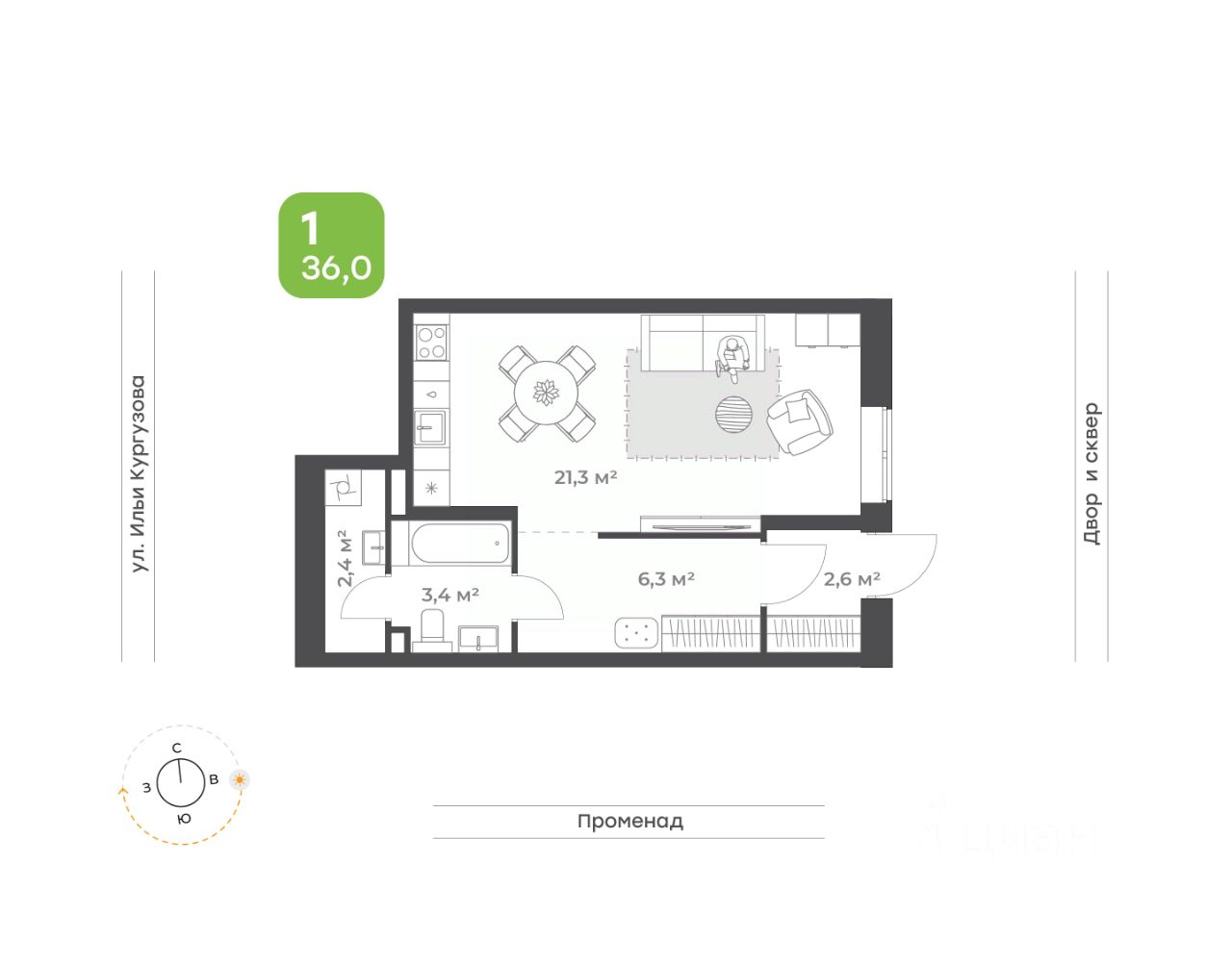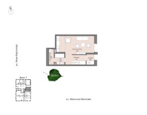 Студия отличный вариант для студентов и прогрессивной молодежи Самый популярный формат квартир! • Кухня-гостиная с двумя окнами для удобного зонирования • Просторный санузел, где вместится все необходимое • Вместительный коридор с нишей под шкаф-купе