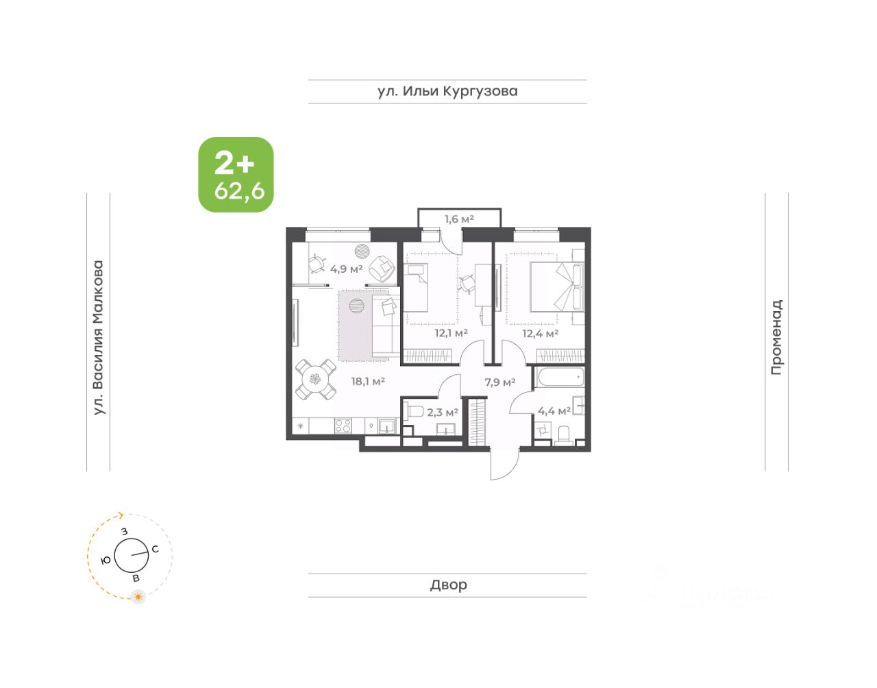 Самая популярная по спросу квартира это квартира с окнами на 2 стороны света! Здесь идеально все!