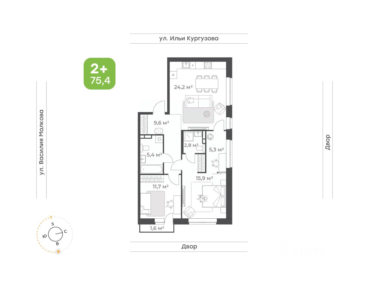 Самая популярная по спросу квартира это квартира с окнами на 2 стороны света! Здесь идеально все!