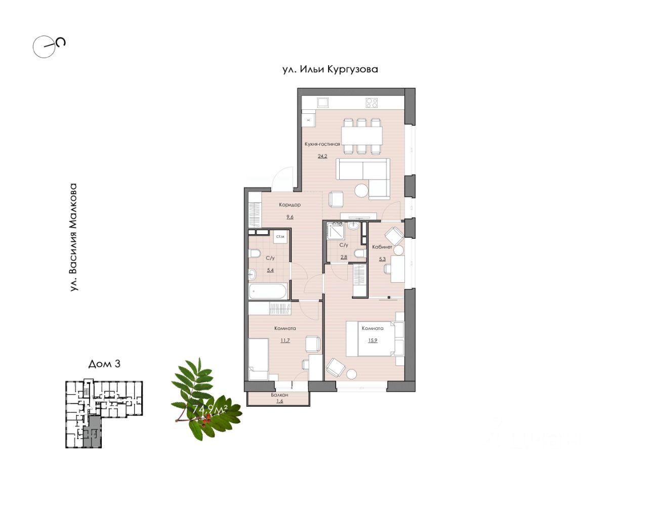 • Мастер-спальня с выходом на теплый балкон-кабинет и с собственной уборной