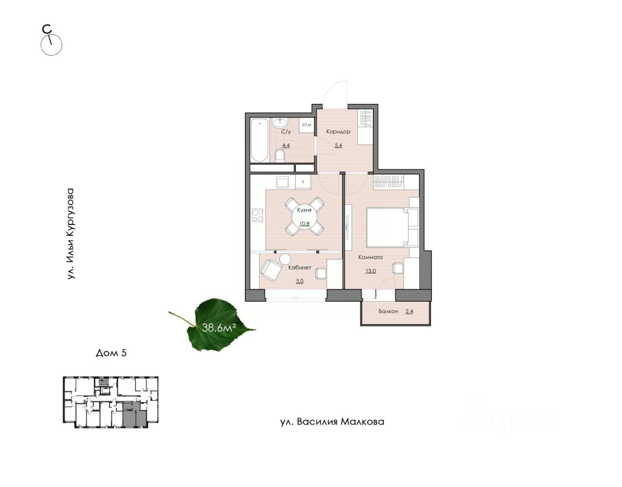 • Удобная кухня с выделенной зоной, которую вы можете использовать как кабинет или зону отдыха
