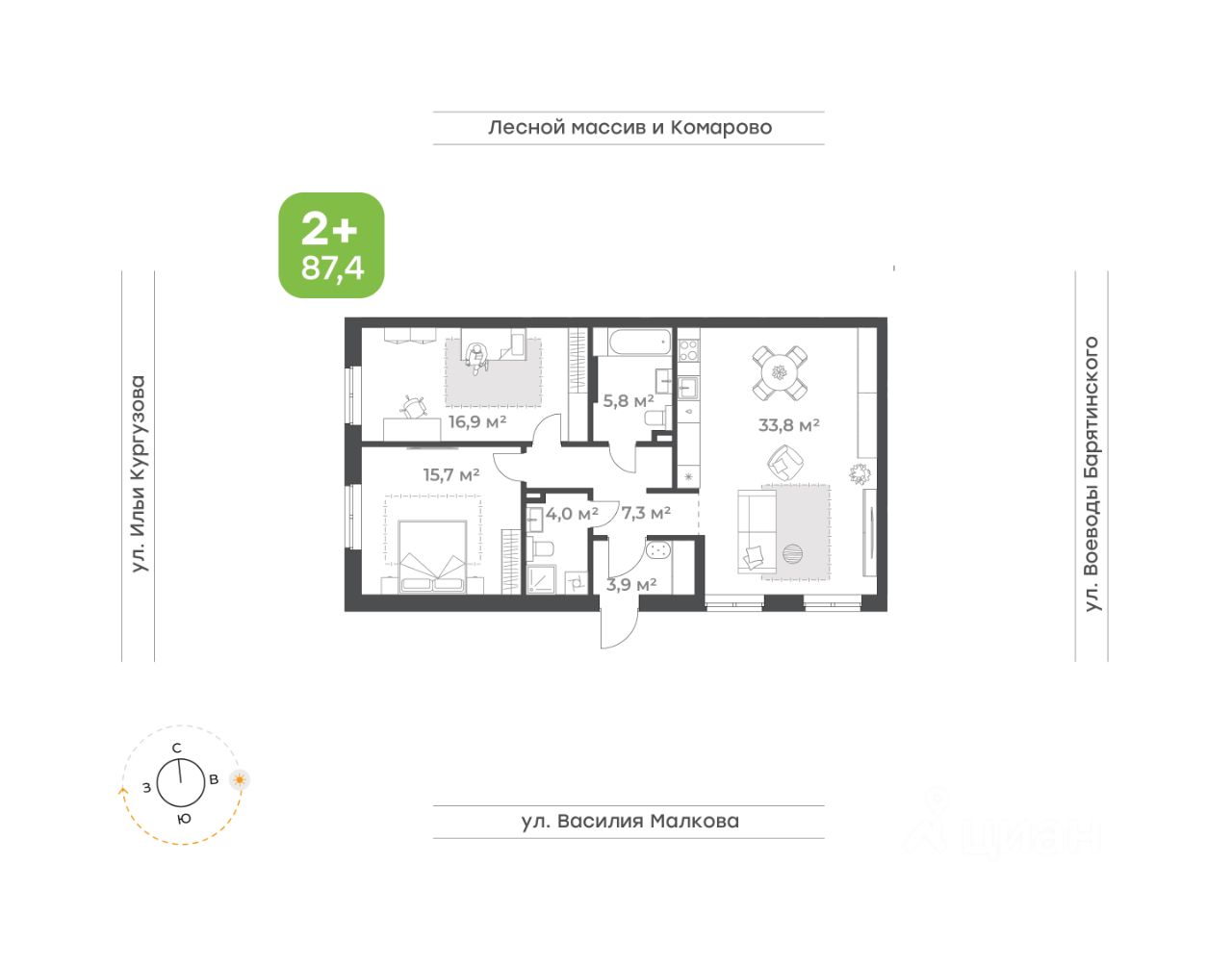 Если вы выбрали эту квартиру, то вы обладатель прекрасной квартиры 2+ с окнами на две стороны!