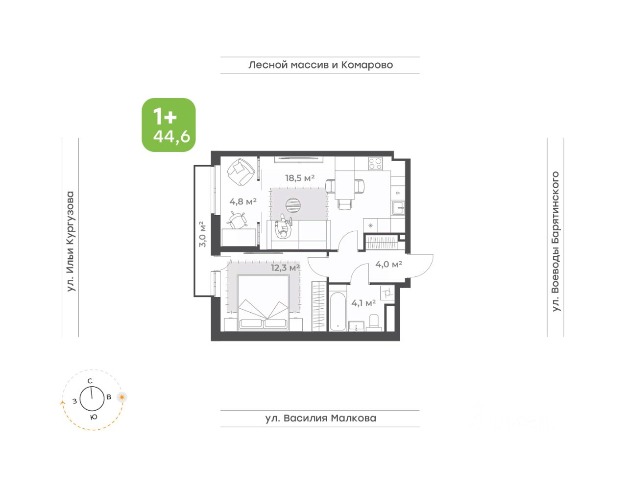 Квартира 1+ с видом на современный микрорайон Комарово-парк