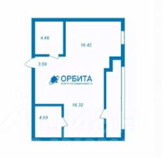 - площадь - 44,9 кв.м. (условное разделение: кухня-гостиная - 16,42 кв.м; комната - 16,38 кв.м.; 2 санузла - 4,46/4,69 кв.м.);