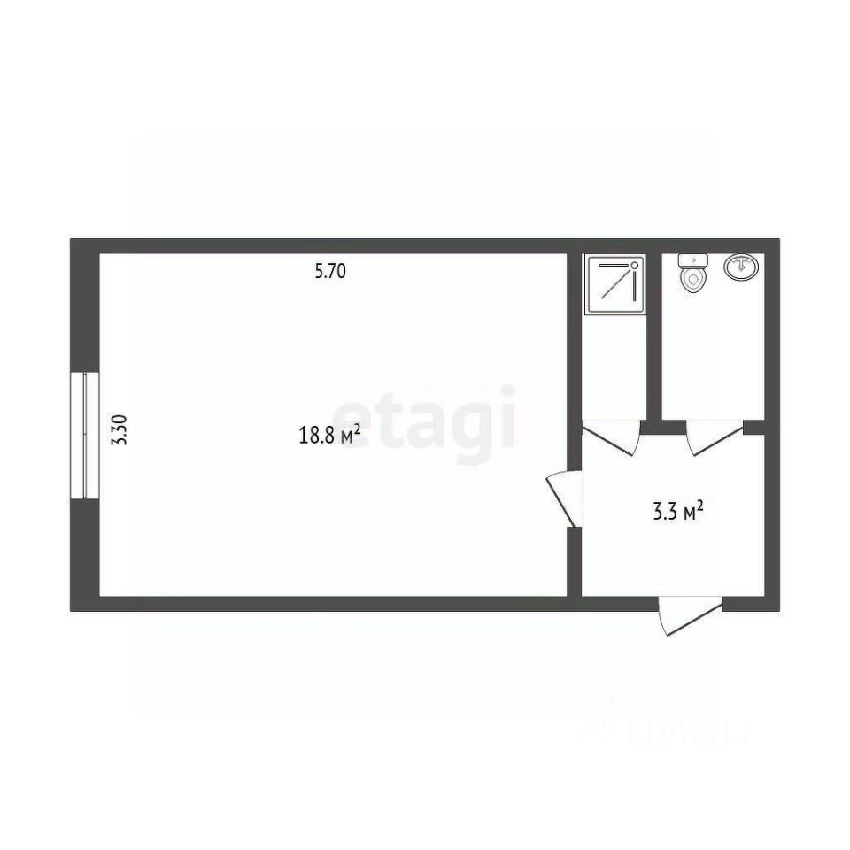 Общая площадь: 23 м2.