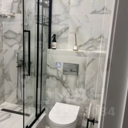 Для вашего удобства в квартире предусмотрены вместительные системы хранения: гардеробная в коридоре, встроенный шкаф-купе на лоджии, открытая система хранения и шкаф-купе в постирочной и спальне. Ванная комната оборудована современной душевой кабиной, подвесным унитазом с инсталляцией и стильной подвесной мебелью.
