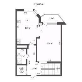 Планировка 1 уровень: холл, гардеробная, просторная кухня с обеденной зоной, комфортная гостиная, панорамная лоджия, гостевой санузел.