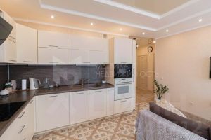 При продаже остается встроенный кухонный гарнитур, по бытовой технике можно обсудить отдельно. Также в квартире остаются два шкафа-купе — в прихожей и спальне, по желанию покупателя можно оставить и остальную мебель.