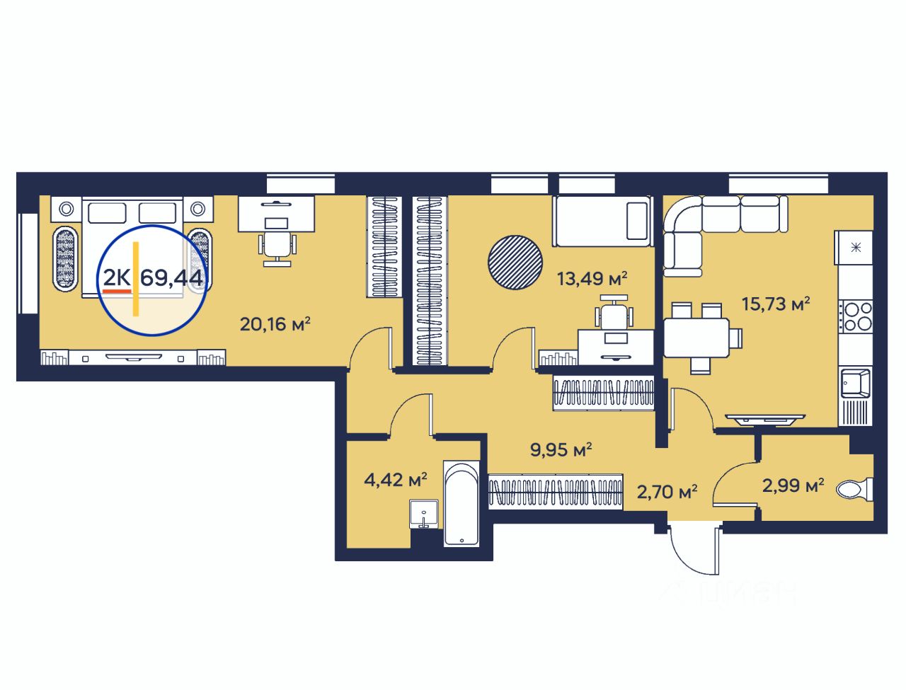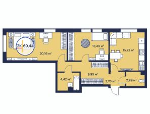 Продаётся 2-комнатная квартира в сданном доме (Менжинского, 60 (ГП-4)), срок сдачи: I-кв. 2024, общей площадью 70.6 кв.м., на 3 этаже. Жилой комплекс "Малевич" расположен в границах улиц Дружбы, Таёжная, Волочаевская, Ватутина города Тюмень.