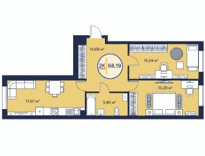 2-комн. квартира, 69,4 м²