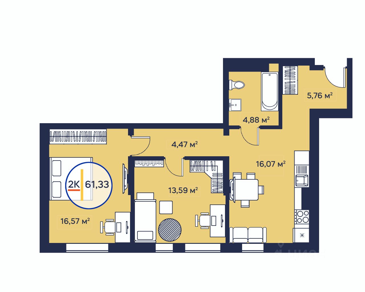Продаётся 2-комнатная квартира в сданном доме (Менжинского, 60 (ГП-4)), срок сдачи: I-кв. 2024, общей площадью 70.1 кв.м., на 4 этаже. Жилой комплекс "Малевич" расположен в границах улиц Дружбы, Таёжная, Волочаевская, Ватутина города Тюмень.