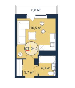Продаётся 1-комнатная квартира в сданном доме (ГП-1), срок сдачи: I-кв. 2023, общей площадью 24.2 кв.м., на 12 этаже.