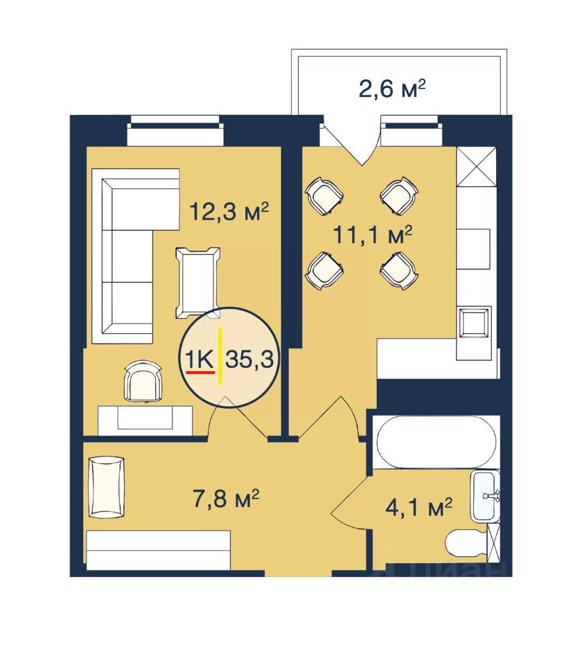 Продаётся 1-комнатная квартира в сданном доме (ГП-1), срок сдачи: I-кв. 2023, общей площадью 35.3 кв.м., на 13 этаже.