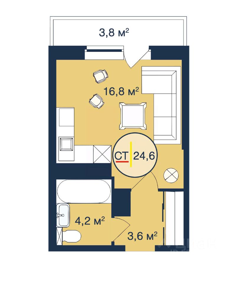 Продаётся 1-комнатная квартира в сданном доме (ГП-1), срок сдачи: I-кв. 2023, общей площадью 24.6 кв.м., на 21 этаже.