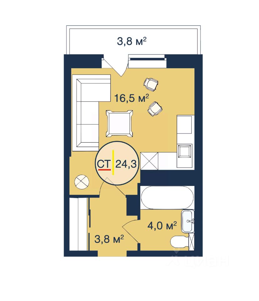 Продаётся 1-комнатная квартира в сданном доме (ГП-1), срок сдачи: I-кв. 2023, общей площадью 24.3 кв.м., на 6 этаже.