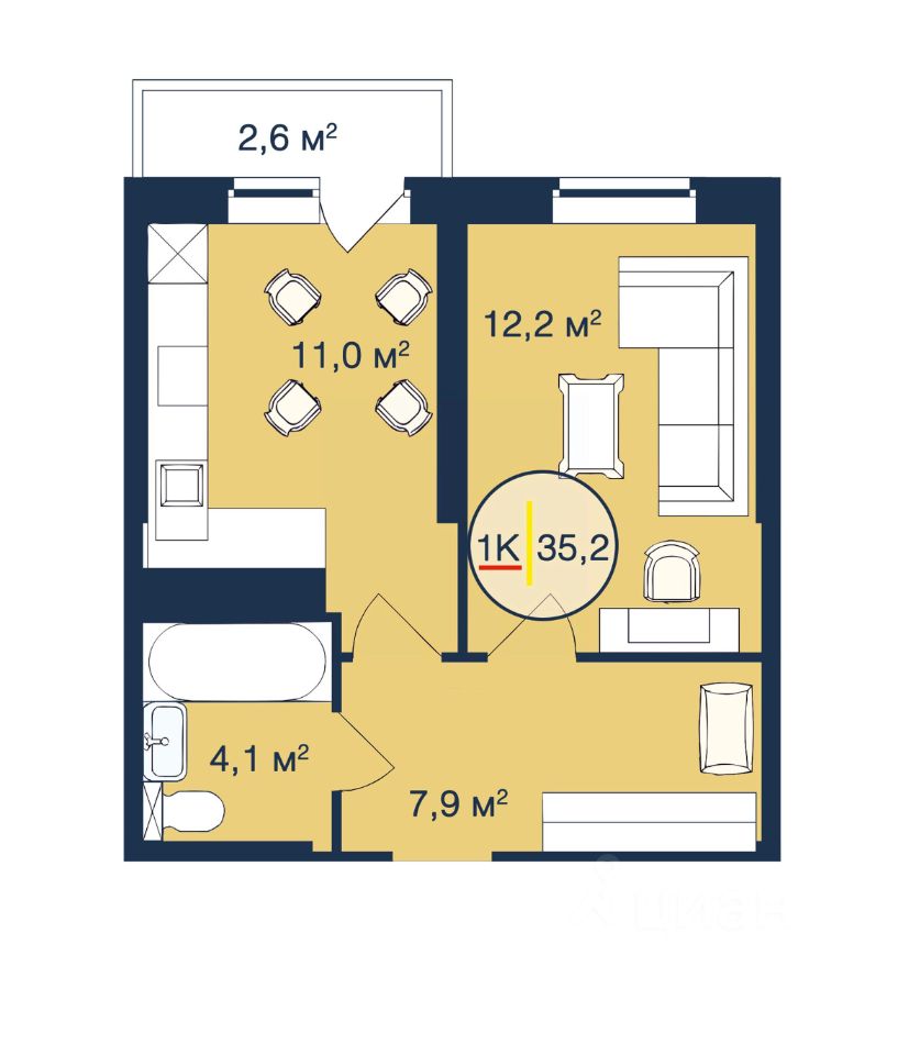 1-комн. квартира, 35,2 м²