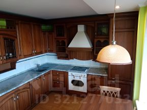 Квартира (общая площадь 119,4 м2, площадь квартиры 112,7 м2) на 4 этаже 10-этажного кирпичного дома. Окна на обе стороны: на внутренний двор и на внешнюю сторону на ул. 50 лет Октября. Три изолированных комнаты, просторная кухня, большой совмещенный санузел. Зал 36 квадратных метров! 2 больших отапливаемых лоджии (из зала и из кухни). Кухня и спальный гарнитур из натурального дерева, заказывались из-за границы. Окна деревянные, пластик только на лоджиях. В квартире точно остаются кухонный и спальный гарнитуры, книжный шкаф, остальное по договоренности.