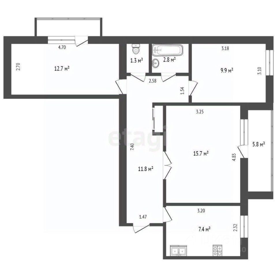 Комнаты правильной, прямоугольной формы, сан .узел раздельно, установлена ванная. Есть балкон, застеклён.