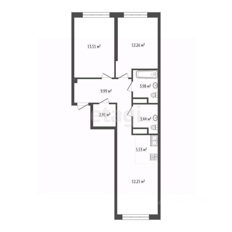 Квартира с улучшенной черновой отделкой . Комнаты изолированы друг от друга. Сторона солнечная. Прекрасный вид из окон.