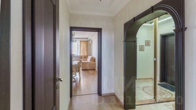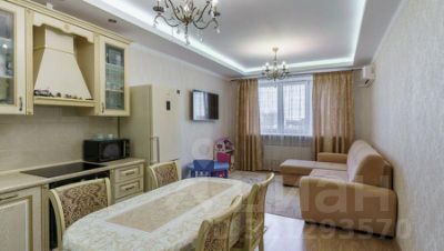 Общая площадь квартиры 73,8кв.м. Кухня 15,2 кв.м., комнаты расположены на две стороны и просторная лоджия.