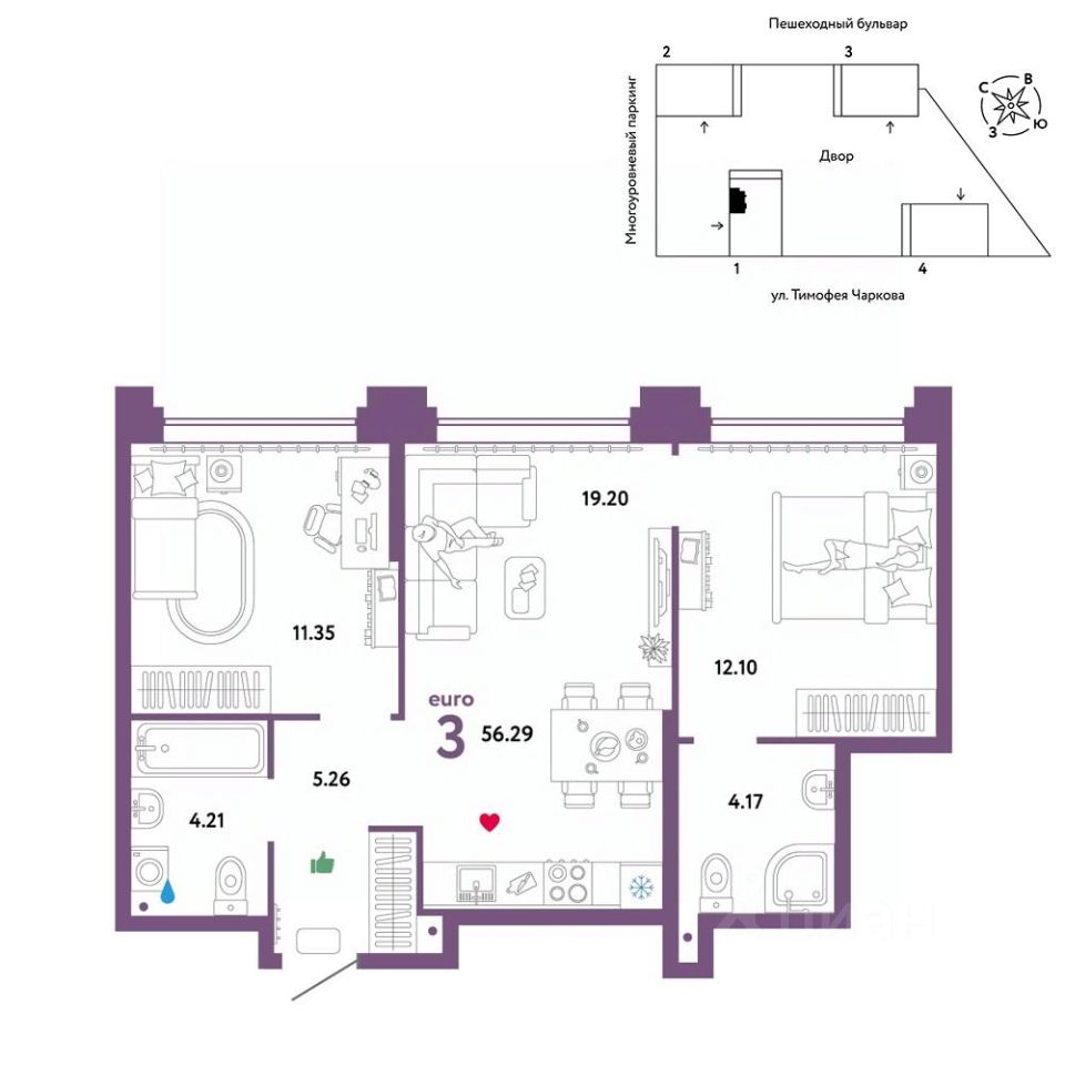Продается 3комнатная квартира от застройщика "Страна Девелопмент". Стоимость указана без учета акций. Квартира на 30 этаже, площадь квартиры 56,29 кв. м. Сдача — в 3 квартале 2025 года. Четыре 32-этажные башни со смещенными осями, объединенные общим стилобатом. На крыше дома появятся детские и спортивные площадки, зоны для релакса и отдыха. А в самом стилобате — торговая галерея и паркинг. У жителей будет свой сад с площадкой для йоги и воркаута, а еще с лаунж-зонами для чтения книг и пикников в тени деревьев. Пока вы занимаетесь спортом или отдыхаете, дети смогут вдоволь набегаться на детских площадках. "Звездном" есть планировочные решения под потребности каждой семьи. Среди их особенностей — просторные кухни-гостиные, мастер-спальни, гардеробные и кладовые. А для тех, кто ищет особенный вариант — двухуровневые квартиры с отдельным входом и квартиры с бильярдной или фитнес-залом. ОТДЕЛКА: Мы сдаем квартиры с предчистовой отделкой. Всё уже готово к ремонту: выведена разводка электричества и отопления, выполнена стяжка пола, стены выровнены. Вам останется выбрать материалы и приступить к ремонту. При покупке квартиры в ЖК "Звездный" можно включить стоимость ремонта в ипотеку. Застройщик предлагает три варианта цветовых решений: натуральный, светлый или тёмный. СПОСОБЫ ПОКУПКИ: Сотрудники Страны Девелопмент будут сопровождать вас на каждом этапе сделки, помогут получить одобрение по ипотеке или снизить ежемесячный платеж. -Ипотека -Материнский капитал -100% оплата наличными