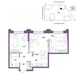 Продается 3комнатная квартира от застройщика "Страна Девелопмент". Стоимость указана без учета акций. Квартира на 17 этаже, площадь квартиры 51,03 кв. м. Сдача — в 3 квартале 2025 года.