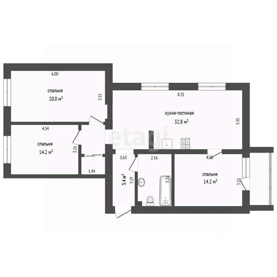 Продается функциональная эргономичная квартира 3+ площадью 98,5 кв.м с тремя спальнями и кухней гостиной , современный ремонт.