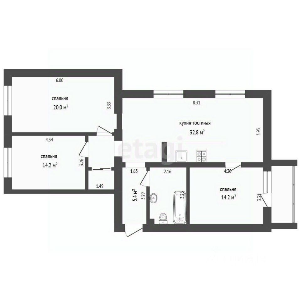 Три спальные комнаты 20/14/14.