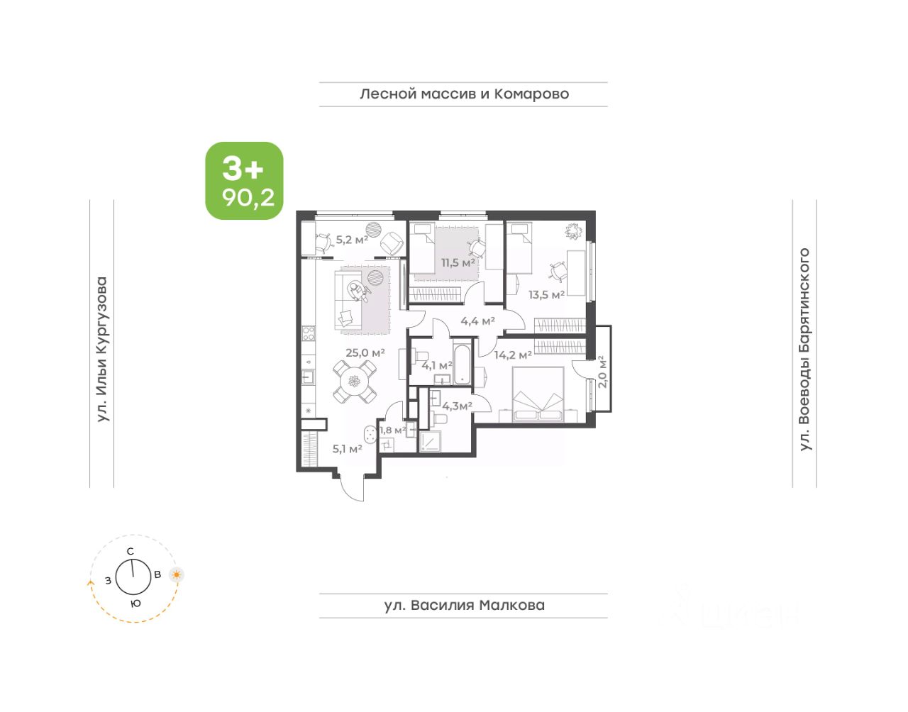 Только представьте: к вам приходят гости, проходят в гостиную здесь для них есть огромное пространство для праздников! А приватная зона с тремя спальнями и своими санузлами удалены от посторонних!