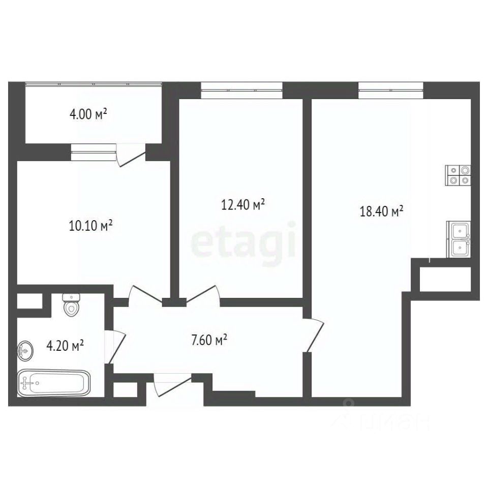 Квартира расположена на комфортном 10 этаже 19-этажного дома. Общая площадь составляет 52.9 кв.м.