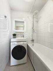 • Керамическая плитка, раковина, унитаз, смесители: современные и функциональные элементы санузла, обеспечивающие комфорт и удобство.