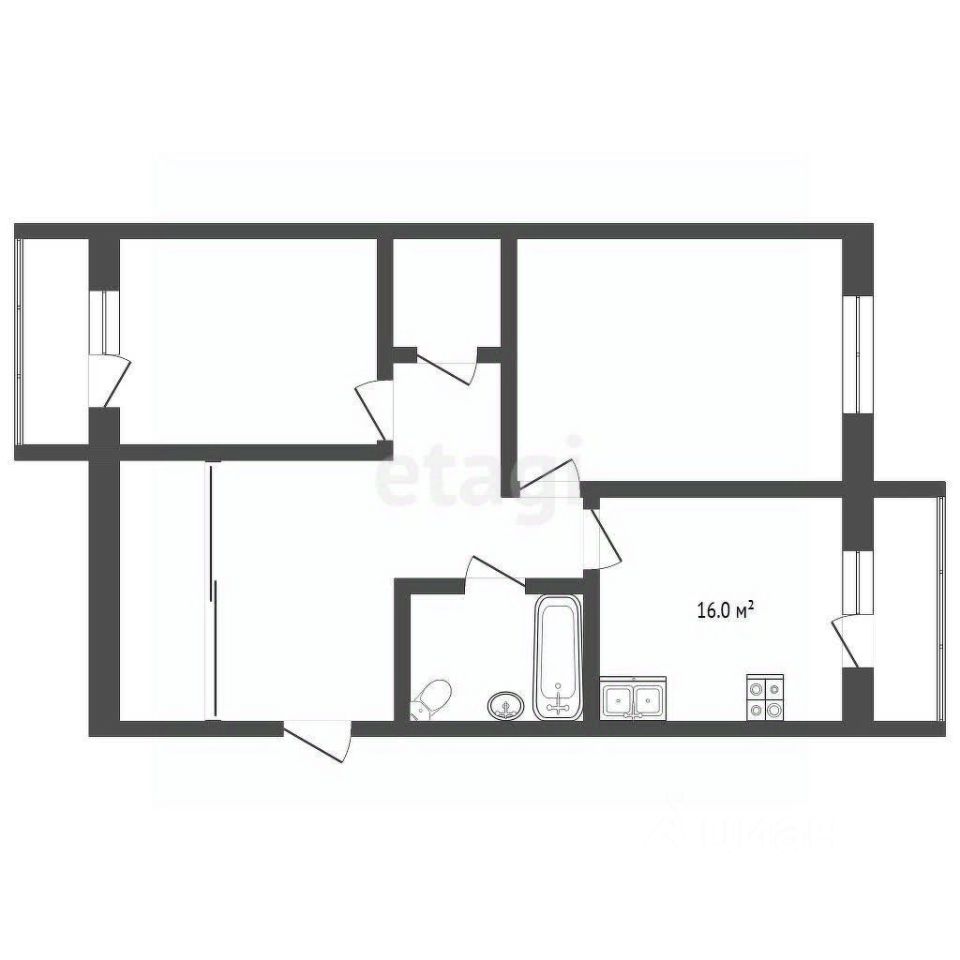 - Два балкона: один застеклен на кухне, другой в комнате