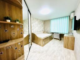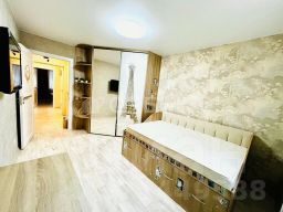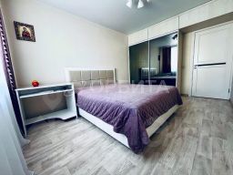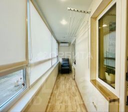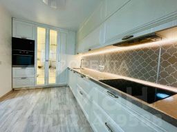 При продаже остается встроенная мебель и техника. Качественный кухонный гарнитур в светлых тоннах, столешница из искусственного камня. В санузле установлен новый водонагреватель.