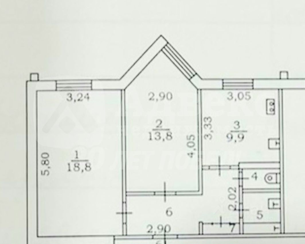 53,9 м²