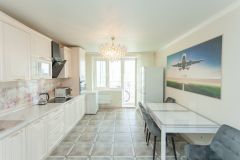 Продается просторная квартира, формата Евро-4 (кухня-гостиная и 3 полноценных комнаты), в квартире сделан современный ремонт. В прихожей выделена зона из керамогранита, особенно удобно в межсезонье. На кухне также использовали тактильно приятный керамогранит, инсталлирован подогрев пола, что делает пол на кухне, не только практичным, но и комфортным в любое время года. Из кухни выход на балкон с витражным остеклением. Во всех комнатах на полу качественный ламинат, на потолке натяжные потолки - матовые. Санузел раздельный.
