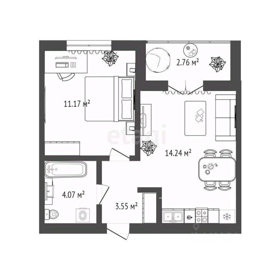 Площадь 35.7 кв.м!